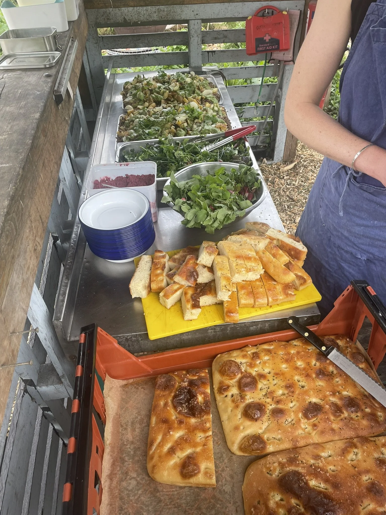 Gardening Club is going from strength to strength, and the atmosphere has been incredible. If you’ve eaten with us recently, you’ve tasted the fruits of their labour: chives, mint and oregano from the garden are the base of our green sauce, served over potatoes at the weekends. Lemon balm and mint infuse the iced tea in our café. Crisp young radishes have made their way into our Friday community lunches and will be available at the MUD Market this weekend.